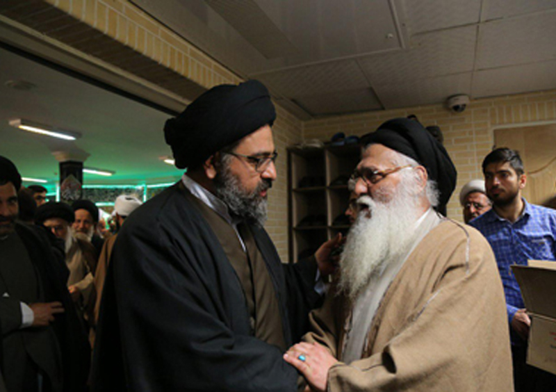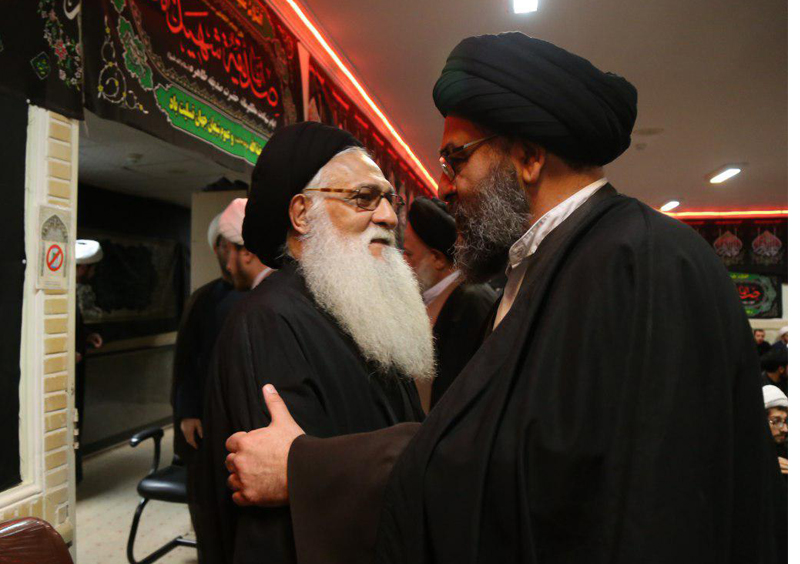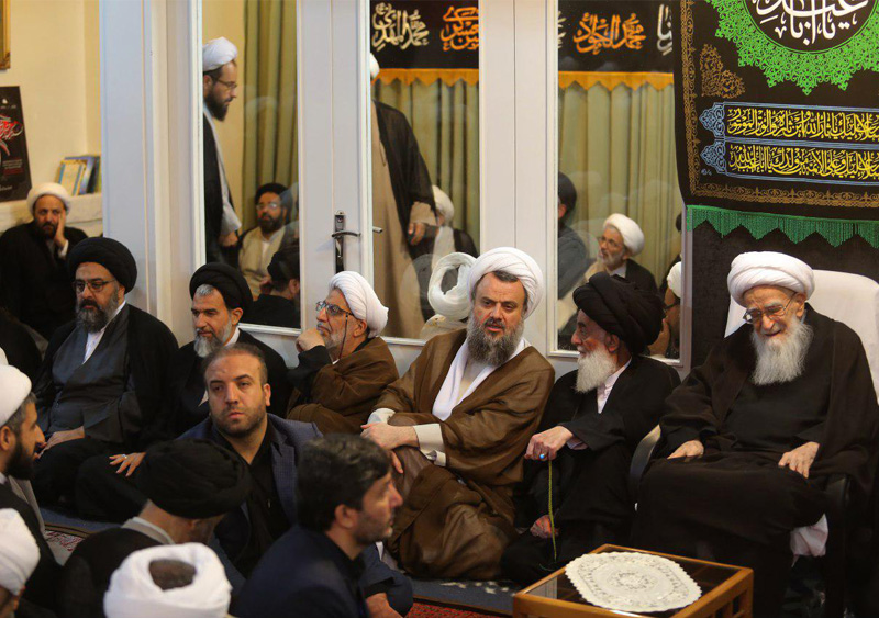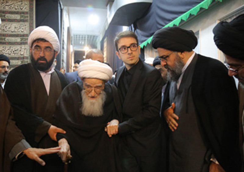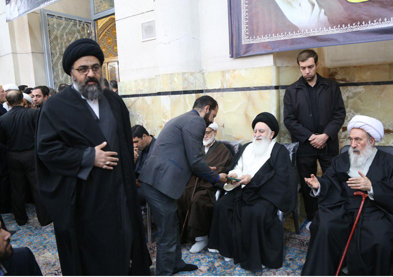 حضور آیت الله سید مجتبی نورمفیدی در مجلس ترحیم همسر آیت الله العظمی وحید خراسانی