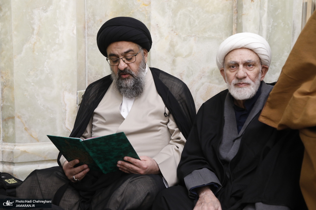 حضور آیت الله سید مجتبی نورمفیدی در مراسم ختم همسر شهید سید مصطفی خمینی – سال ۱۴۰۳